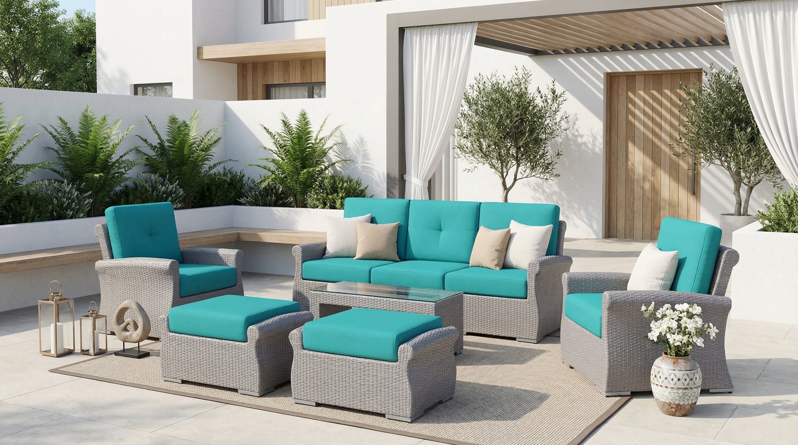 Fully Assembled Rainshield Patio Furniture - Luxury 7-Piece Oversized Sectional with 6-inch Cushions