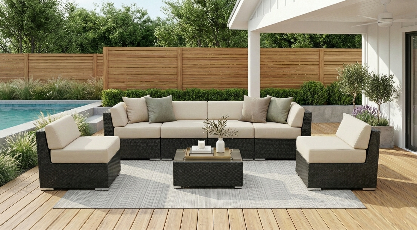 Fully Assembled Rainshield Patio Furniture - Ohana 8 Piece Sectional with 6-inch Cushions